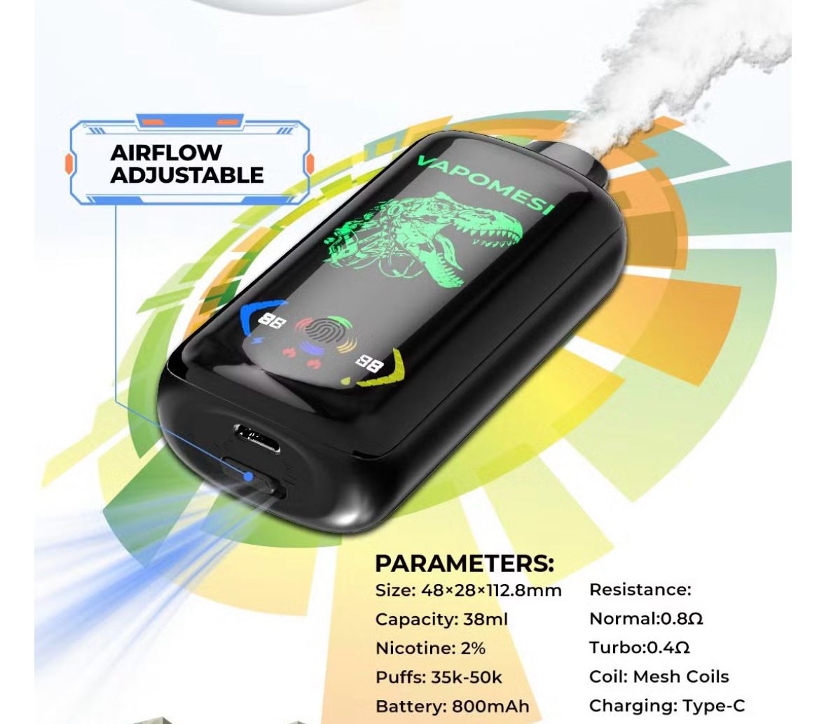 Experimentează libertatea de a vapa fără griji cu Vapomesi Dinosaur. Cu o capacitate de 35.000-50.000 de pufuri, acest vape îți oferă confort și plăcere pe termen lung!